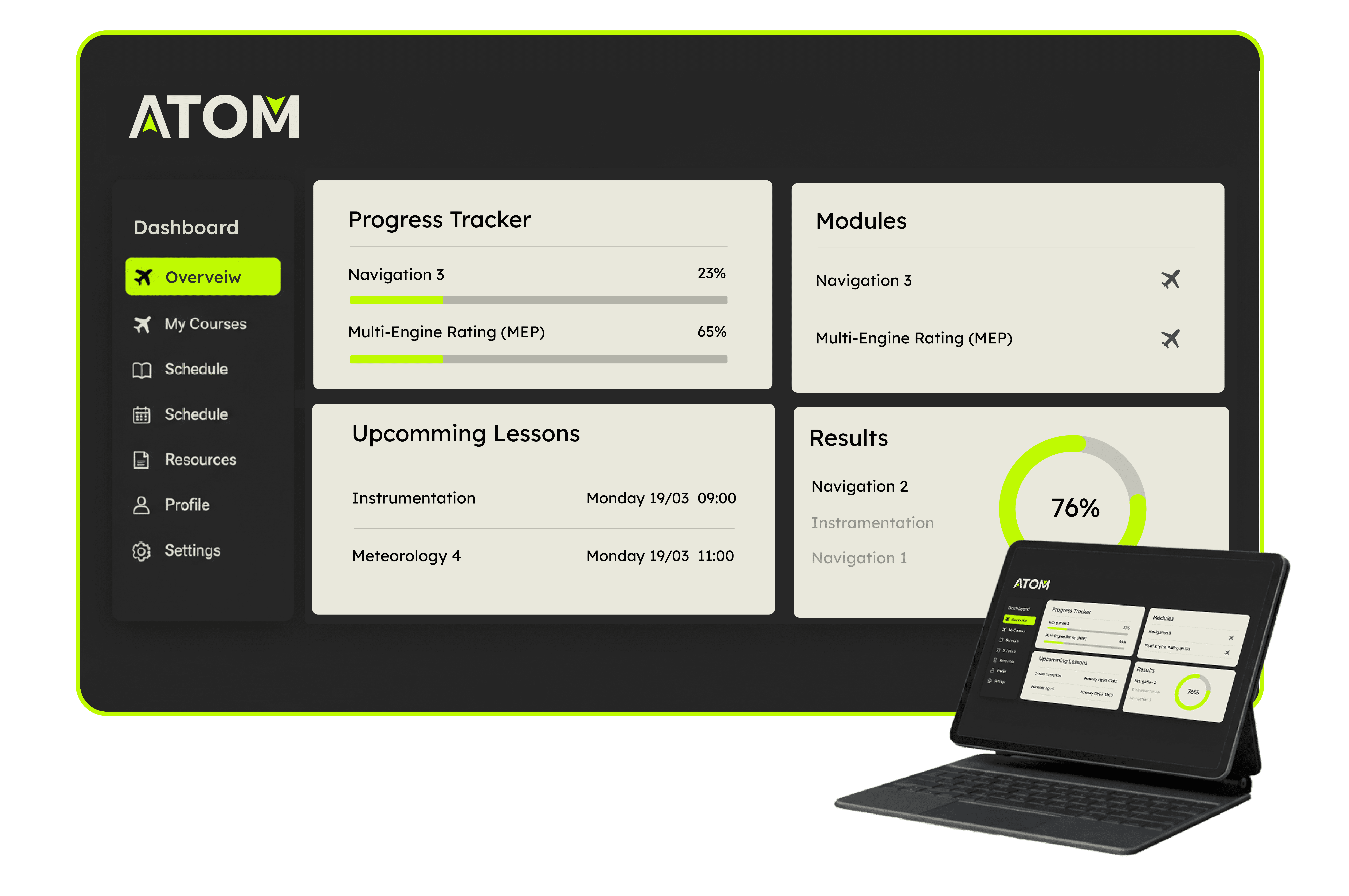 We created the acronym ATOM, shortening the brand name from Aviation Training and Operations Management.